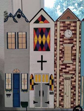 Vintage Oversized Hand-Carved Folk Art Village Solid Wood 49*27 inch - $50 (Katy)