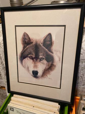 Bob Quick wildlife art, “GRAY WOLF”, double-matted and framed SIGNED PRINT, #59 of 350. WITH CERTIFICATE OF AUTHENTICITY. Great art from Bob Quick of Sedona, Arizona, dated 1992. Beautifully framed. This numbered / limited photo print artwork of Bob Quick pastel is approx. 11” x 14”, and the frame is approx. 17” x 22”. Glass front, professionally framed and ready to hang.
