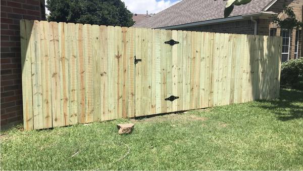 β’6β6β tall with 3 rails, a 2x6 rot board and pine pickets $27/ foot
