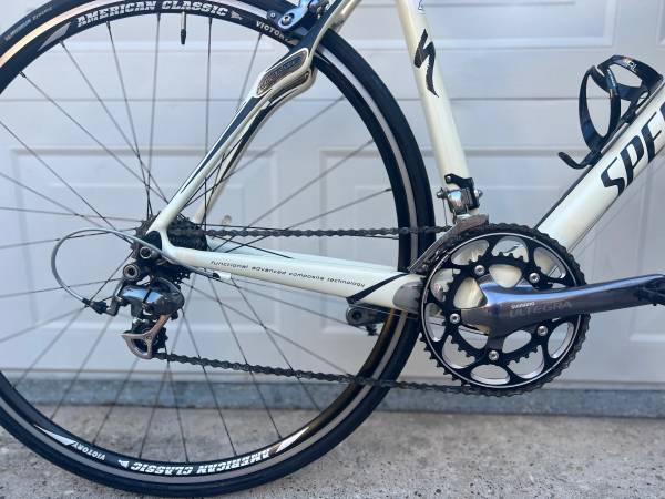 Specialized Roubaix Carbon Fiber road bike for sale. Only used a couple of times and always stored indoors. Just had a recent tune-up and rides great. Equipped with Shimano Ultegra components that shift smoothly.