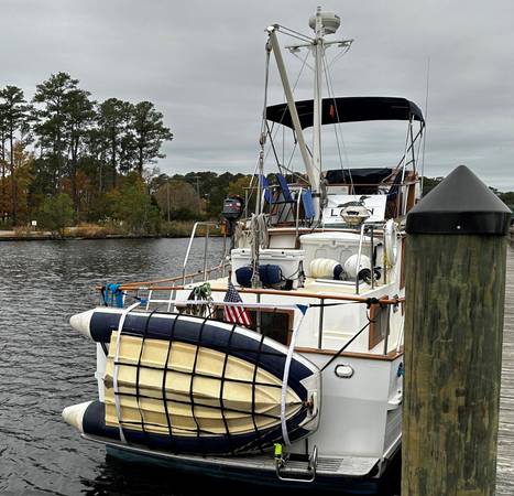 Testing has shown reduced engine exhaust noise on deck and keeps you drier from splashing in following seas since inflatable rests snug against transom.