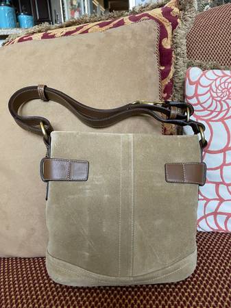 I have for sale an authentic with tags attached brand new Coach purse for sale. The tote is a tan suede and brown leather and measures about 12 inches wide by 10 inches tall without the strap. The inside of the purse is tan, the purse is in brand new condition without any flaws, ask with any questions.