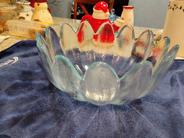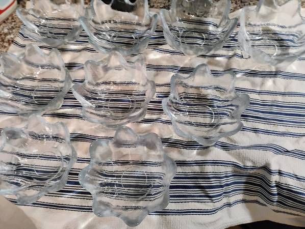 Vintage blenko 10 bowl set. 9 small bowls plus large bowl lotus leaf set asking one fifty or best offer. No chips cracks or scratches that I know of.