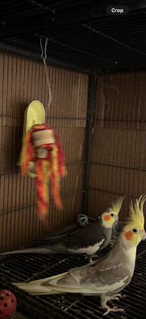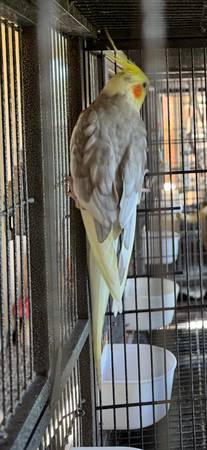 Hello, rehoming 2 male cockatiels and 2 baby cockatiels under 5 months with cage. Not tame. For question text . Thank you