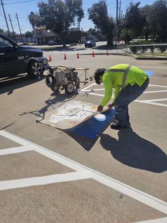 NEW LAYOUT RESTRIPING PRESSURE WASH PARKING LOT SERVICE ALL HOUSTON AREAS HANDICAP. FIRE LANE NO PARKING.POST INSTALLING CONCRETE WHEELS STOP INSTALLING INFORMATION NELSON MENDEZ Free estimate...