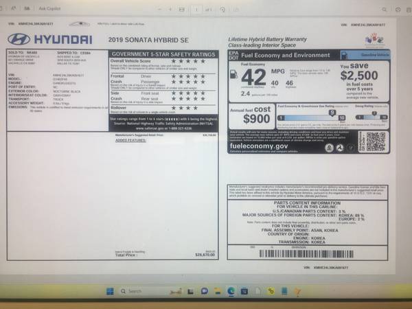 2019 Hyundai Sonata hybrid for sale - Houston, TX - craigslist
