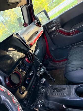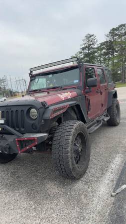 2011 Jeep Wrangler, Maroon and Black, Metal fenders and bumpers. Lifted and big wheels. Many upgrades. ABS traction light on, but have the part to replace it. Blend Door also needs to be replaced, but also have the part for it. It left my daughter stranded for the last time LOL. It just died on her on her way home, but by the time we got there it started right back up and has been running ever since like nothing was wrong. She said it was a sign to buy a new car for better gas mileage.