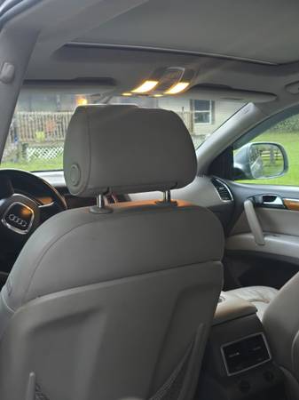 Meet Silver Bullet she is a Audi Q7 Premium Plus. This is my favorite vehicle but my husband says it is time to let it go. I have put a lot of work into it. She has a whole new front end, a whole new fuel system, rear tires are new thru discount tire, master window switch is new, hood shocks are new, interior is in awesome condition considering her age. I have also replaced her ECM as well(which happened after replacing all the fuel system parts). Now for the cons, the AC compressor will need to be replaced soon as to not lose AC, the back driver side window does not roll down, the wires snapped so I have it up and it won't go down till the cable is replaced (cost $40) but I wasn't worried about it. The hatch needs new shocks (cost less then $20). She has a clear title, no salvage or rebuilt. No check engine light. She was also just had an alignment. She seats 7 and has 3rd row seating. I am open to trades, would prefer a truck but let's see what you got. Don't low ball me please and if I get the new AC compressor the price will go up.