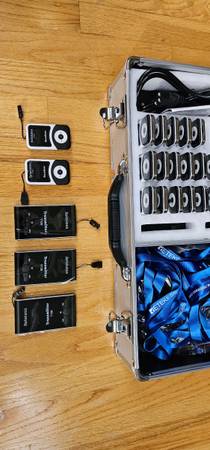Retekess Wireless Translation System in a rechargeable Case with 19 Receivers, 3 Transmitters, Wireless. Like new. Sold as is. No warranty. $425
