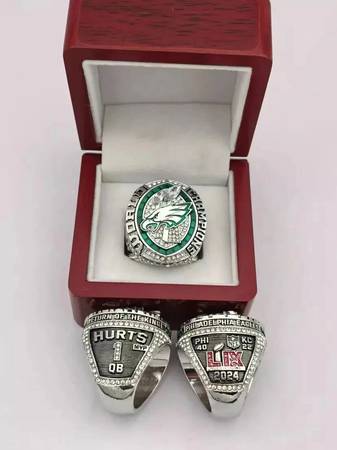 ***** Brand New 2024 Philadelphia Eagles S. B. LIX World Championship Ring Player: HURTS - Size: 11 WITH Eagles Logo ROSEWOOD GIFT BOX.$ 75.00 -- Text Only 832-774- 3 9 Five Six