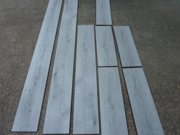 Three BRAND NEW boxes of American Coastal Collection Laminate Flooring and eight additional pieces. Collection : American Coastal Collection Model # LAACC Color: Crystal Cove Width: 7-1/2 in. (195...