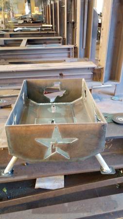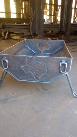 Custom built fire pits all made from 3/8 and 1/4 inch steel... extremely heavy duty and built to last a lifetime!!!!! Contact us today to get yours ordered!!!! Holidays are coming and so is the cod...