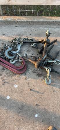 4 speed binders , the hooks are 3/8- 1/2 2 j hooks with 3 ft chains, 2 small hooks with 3 ft chains