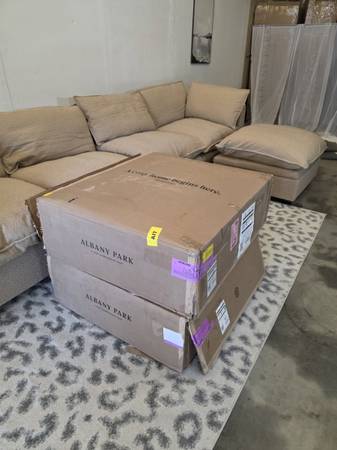 5 piece sectional new, 2 corners, 2 armless and 1 ottoman. Re arrange any way you please. Easy assembly and washable cases.