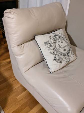 Excellent condition pure leather Chaise only a year old. Color off white. From no pets & non-smoking home. Paid $1100