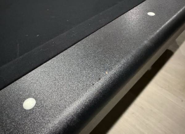 Table is in great condition. Recently cleaned. It is always covered with a heavy-duty waterproof and weatherproof cover. See photos for very minor damages on the rails and felt.