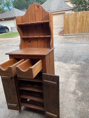 This wooden wine cupboard is 60 inches high, 20 1/2 inches wide, and 16 1/2 inches deep.