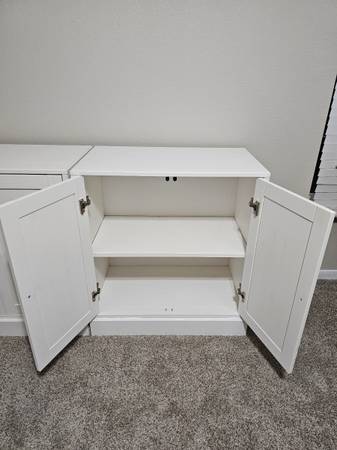 Like new. Cash only. No holds. Smoke free, cat friendly home. Price for one: $200. Price for both: $350. Price at Ikea: $270 each ($540 for two). Solid pine. Soft-closing hinges. Middle shelf is...