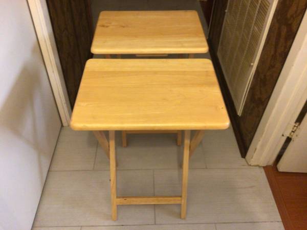 Folding wood table ( 18”L x 14.5”W x26”H ) . Very good condition.