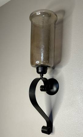 The Uttermost Bronze Joselyn Wall Sconce is beautiful accent piece for any home decor. At 30" tall and 7" wide this wall sconce is a statement piece. Set the atmosphere with a candle or without. The amber glass hurricane diffuses candlelight warmly. Expertly hand forged from antiqued bronze metal, the Uttermost sconce features a gracefully curved frame, cradling the transparent amber glass hurricane. This piece will look great in your entryway, dining space, or cozy nook.
