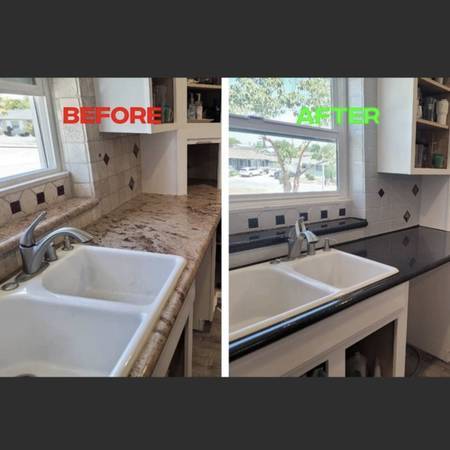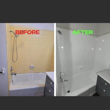 Bathtub, Sink, Shower, Tile, Vanity, Counter tops, Kitchen cabinets, Refinishing, Resurfacing, Re glazing, Re-enameling, Refinish, Resurface, Re glaze