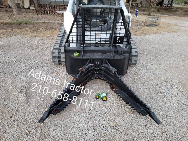 Bobcat Skid steers, buckets, forks, grapples, blank attachment plates, augers, trenchers, backhoe attachments, brooms, concrete buckets, hay spears, trailer hitch movers for skid steers, tires, tires and wheels, foam filled tires, rubber tracks, rock buckets, skeleton buckets, teeth buckets, smooth buckets, rotary tillers, angle brooms, pick up brooms, forestry mulchers, tree shears, tree pullers, post pullers, brush cutters, rotary mowers, brush shark attachments, augers, auger bits, rock bits, auger extensions, stump planers, post drivers,