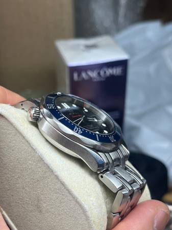 Watch comes with 3 bezel inserts, 1 red and 1 blue these are aluminum. The red insert is used and lume pip fell off, the blue insert is new.