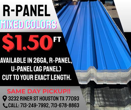 R-panel mixed color 26Gauge …… $1.50 per linear Ft Don’t miss this holiday sale