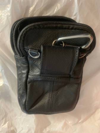 Leather Cellphone Belt Loop Holster Asking $10 or best offer Material: Leather Color: Black Size Approx: 4 x 2 x 7 inches Has 2 zippered main compartments of same size plus 1 magnetic closure pocket...