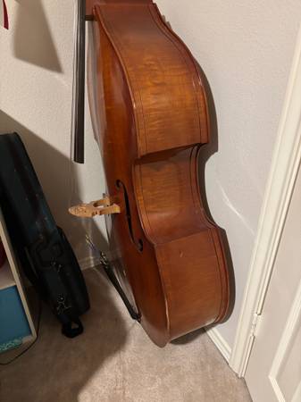 Nice beginner or intermediate Upright. Bridge, bass bar all in tact. No seam separation. Ready to play. One small dent in upper bout. Other than that, it is a fine instrument