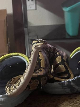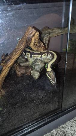 Rehoming my ball python due to taking care of a family member so I'm not really home as much anymore. I want my snake to go to a person who has reptile experience and will take in my snake as their baby and not use it for breeding. It will come with its enclosure, all the stuff inside the enclosure, and its lamp with 150 watt light bulb. This snake loves to come outside its tank on a daily for a couple hours. It loves to roam around freely and find hiding spaces. Highly energetic with a big appetite. It's been eating a defrosted small rat once a week. Will only meet up in an open public space like an heb parking lot or such. Cash only please. Feel free to email or text me at anytime with questions and i will get back to you as soon as possible :)