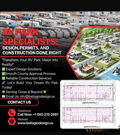 Bellagio Design & Construction brings over 30 years of experience in town planning, civil engineering, and RV park design. We’ve successfully worked on projects ranging from small parcels to developments over 200 acres.