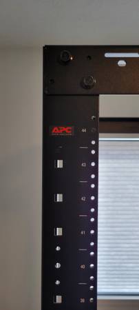 For sale a APC 44U open frame server rack. The rack is in good condition but was pulled from a working environment so it has some minor cosmetic scratches.