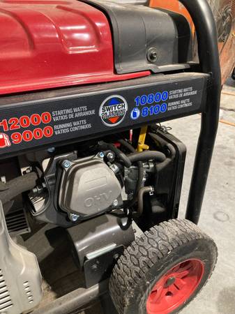 New only Used for 1 week during hurricane Berayl. Wheels.. Dual fuel , ---Gas -Propane - ---. Electric start . I now installed whole House generator & No longer need. Hurricane Season is here be prepared. Also have brand new Full 100lb propane tank for extra cost , Unit runs about 8 hrs on a grille size tank . On gasoline runs more power and longer