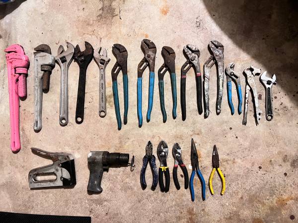 21pc tools include Ridgid 18/14 Inch Heavy-Duty Straight Pipe Wrench, Crescent 12in, different size Adjustable Joint Pliers - 12 in OAL, Tongue & Groove..... for sale , need take all, ,price...