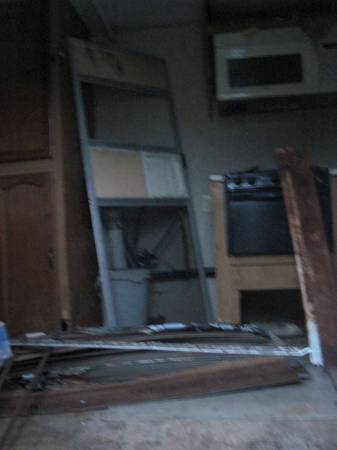 I will also give you some materials seen a little bit in the pictures. Flooring that was left outside and got wet. Not sure if it is usable. Some wood pieces, A screen door you might be able to attach, Etc.