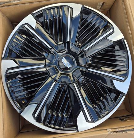 2026 CADILLAC ESCALADE IQ RIMS OEM NEW ( 24" INCH ) ( 4 RIMS ) 8 LUG GLOSS BLACK / MACHINE SILVERADO EV SIERRA EV