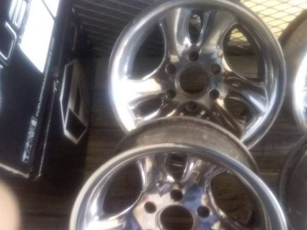 (4) 16" × 8" 6 lug on 5.5" bolt pattern highly polished aluminum like chrome american racing truck wheels in very good condition $400 for all 4 (CALL) two81 - 614 - 974nine (CALL) THANKS